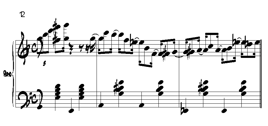 Figure 5 « Play piano Play » (1947) : transcription descriptive des quatrième, cinquième et sixième mesures du A.